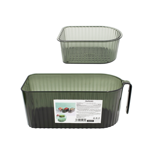 2-LAYER RIBBED FRUIT CONTAINER WITH HANDLE (TRANSPARENT GREEN)