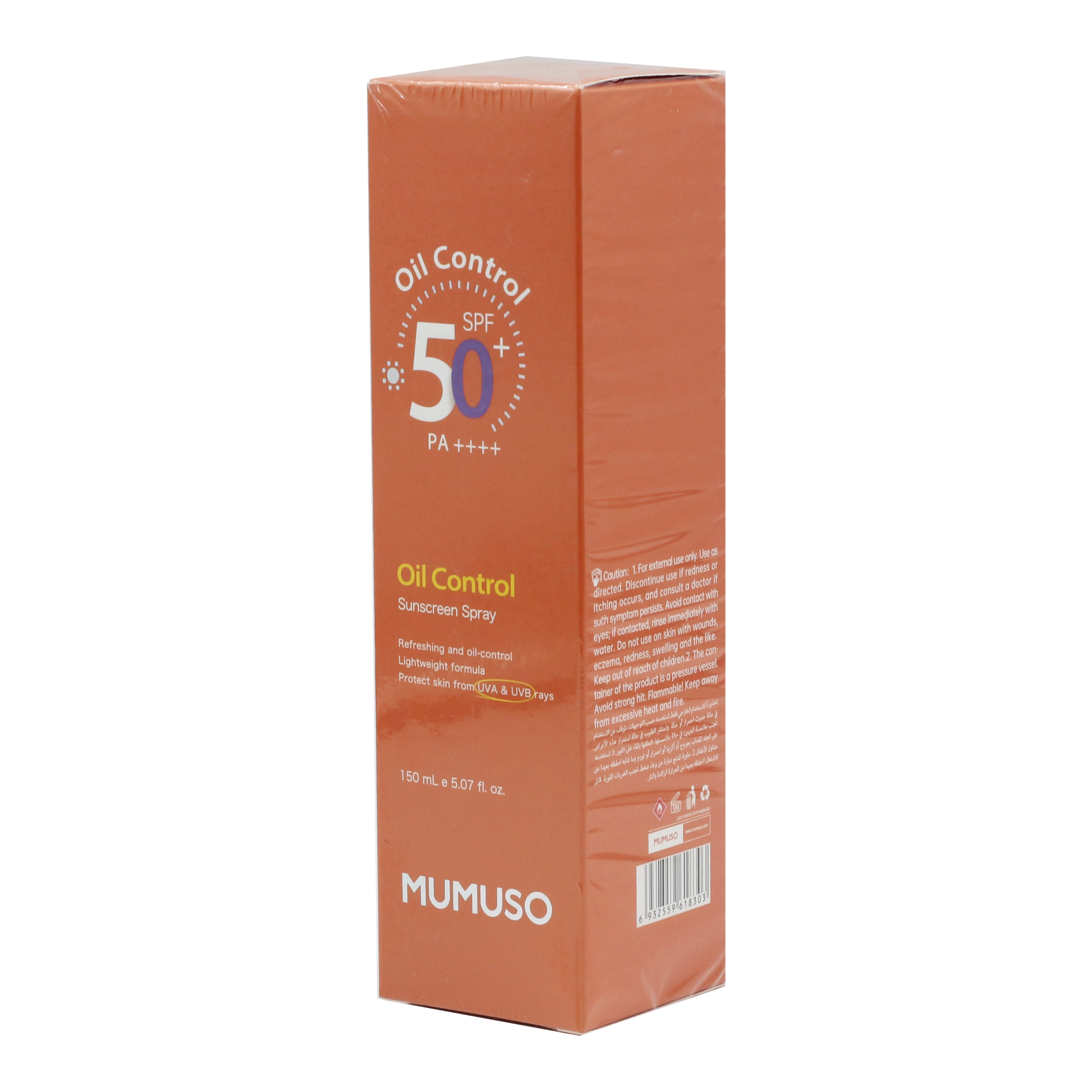 With SPF 50+ PA++++, the sunscreen spray helps protect skin from UV rays.